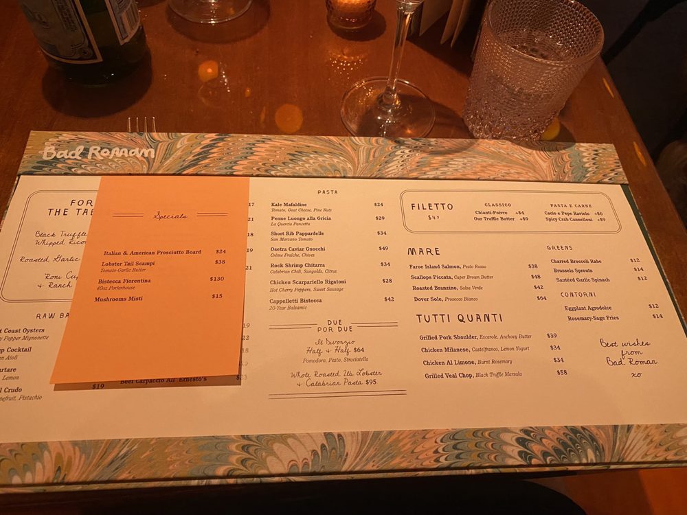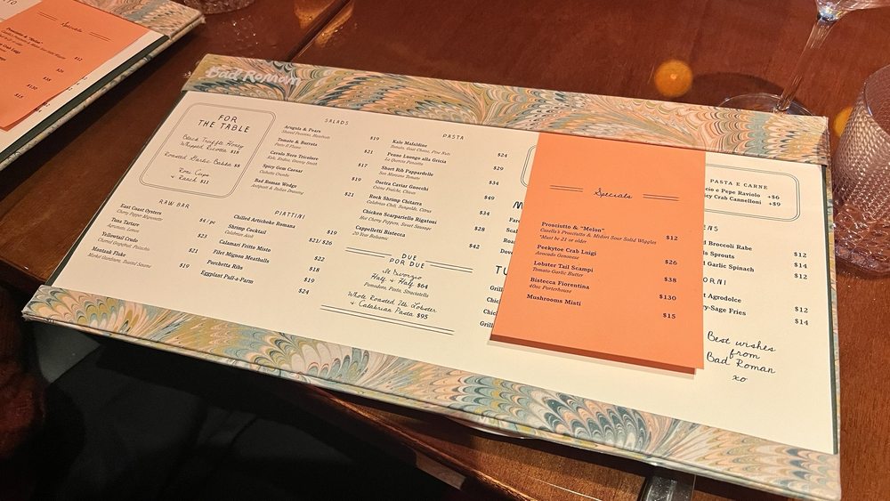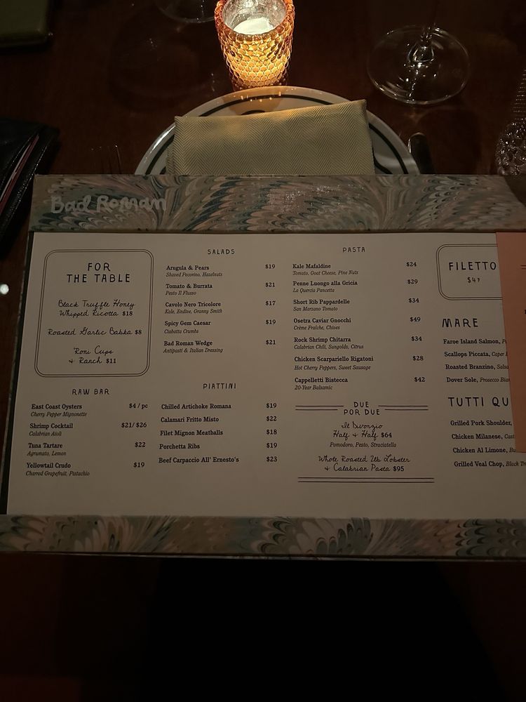 Standout dishes include the honey whipped ricotta, meatballs, filetto with ravioli, rock shrimp chitarra, and lemon cheesecake. Customers rave about the flavorful and creative food, as well as the friendly and attentive service. The bar at Bad Roman is a highlight, with expert bartenders crafting delicious cocktails.